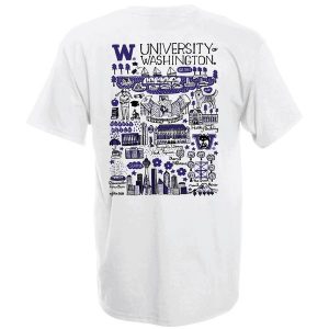 Renowned artist Julia Gash’s distinctive and lively design captures the spirit of the University of Washington and its beloved Huskies. This T-shirt is more than just a wardrobe essential; it’s a work of art that celebrates your alma mater in the most unique and creative way.
